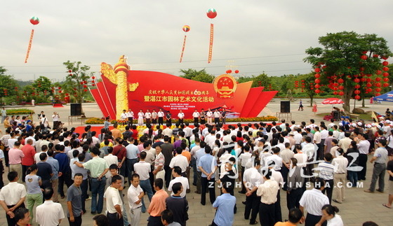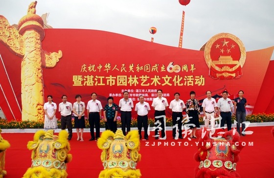碧海银沙网讯(图文/特约摄影师 陈小飞 黎 明 通讯员/林洪强 编辑/金 臻)9月30日,南国热带花园鼓声鼓声震天、醒狮舞动,显得异常热闹。湛江市“庆祝新中国成立六十周年暨园林艺术文化活动”在这里拉开序幕,市领导陈耀光、阮日生、潘那生、麦教猛、柯明、黄雪艳等出席了活动