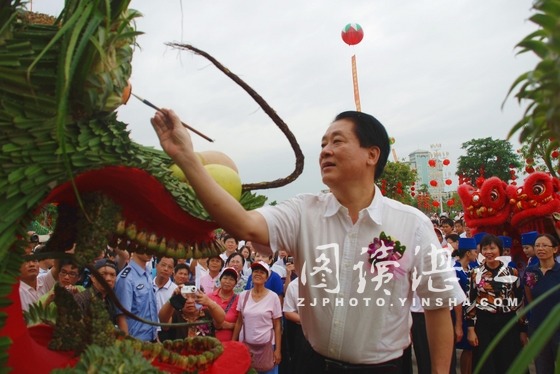 陈耀光书记宣布“庆祝新中国成立六十周年暨园林艺术文化活动”开幕后,标志着双节的系列活动正式开始。活动现场,陈耀光书记、阮日生市长分别为60米长省级非遗项目“簕古龙”点睛。随后,陈耀光一行参观了南国热带花园大型国庆献礼花卉组景、盆景等景致,同时观看了儿童画画、艺术插花等现场,并给以高度评价。